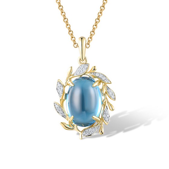 14KYW Pendant Blue Topaz (Swiss Blue),Diamond (P320933BLT14KYW)