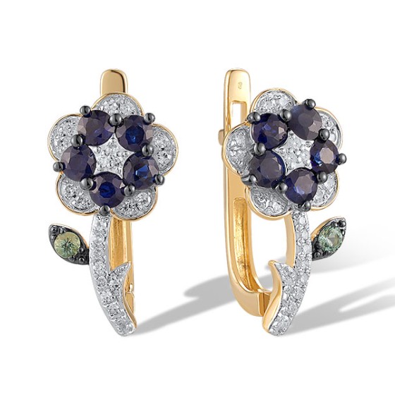 14KYWB Earrings Blue Sapphire,Diamond,Emerald (E320806EMS14KYWB)