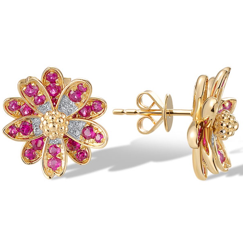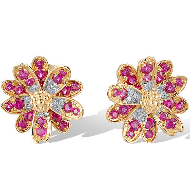 14KYW Earrings Diamond,Ruby (E320515RUY14KYW)