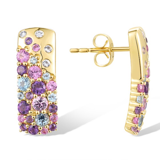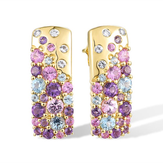 14KY Earrings Diamond,Pink Sapphire,White Topaz,Amethyst,Blue Topaz (Swiss Blue) (E316811MUL14KY)
