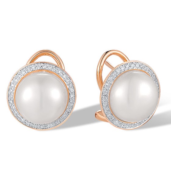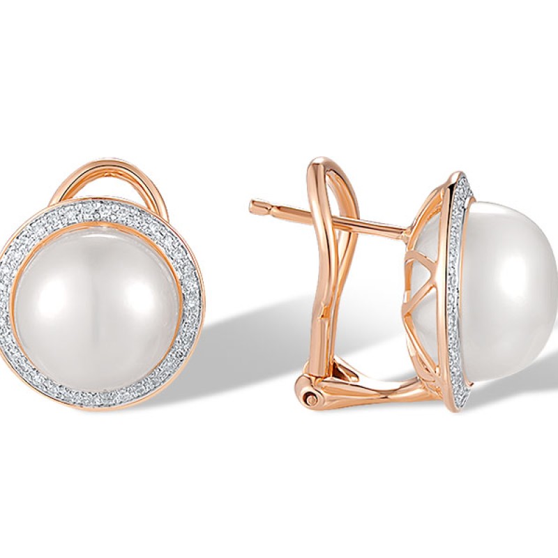 14KRW Earrings Diamond,Fresh Water White Pearl E304426AFWP14KRW