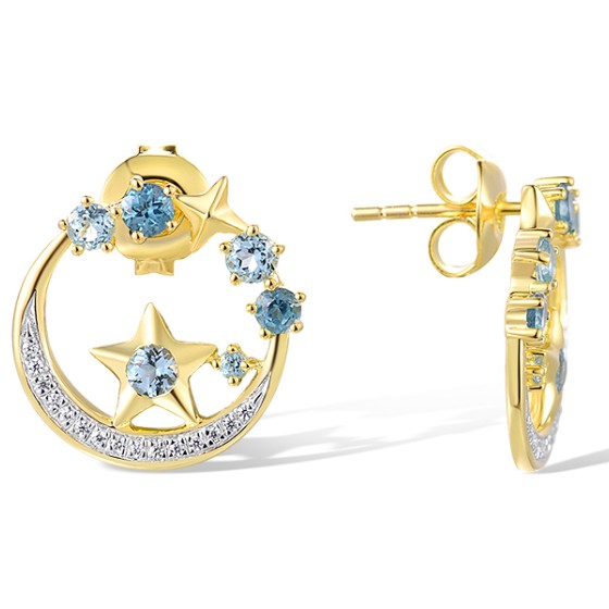14KYW Earrings Blue Topaz (Swiss Blue),Diamond,London Blue Topaz (E317465BLL14KYW)