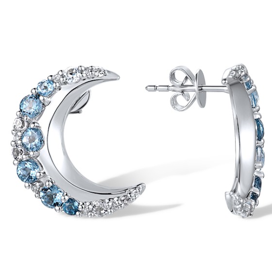14KW Earrings Blue Topaz (Sky Blue),Blue Topaz (Swiss Blue),Diamond,London Blue Topaz (E317467BKLT14KW)