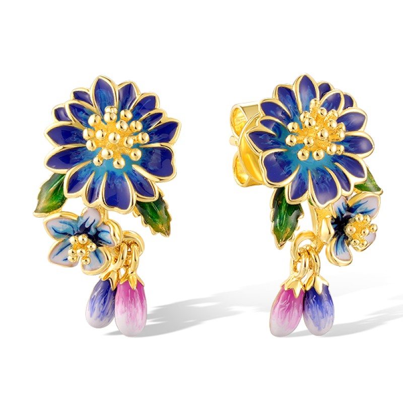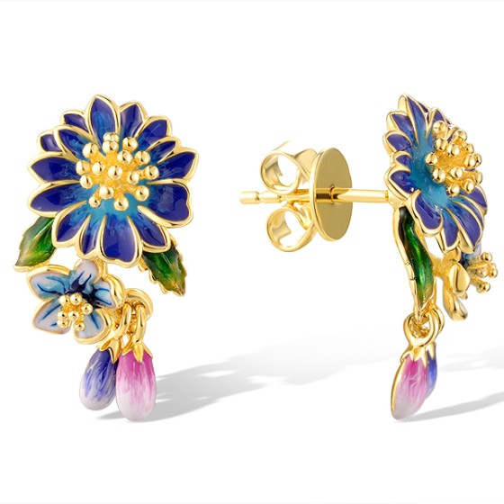 Sterling Silver w/ Yellow Plating Earrings Enamel (E321107ENASY925)