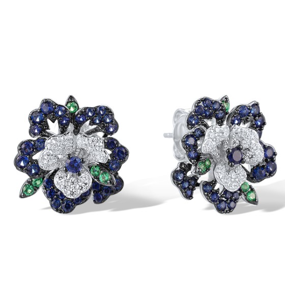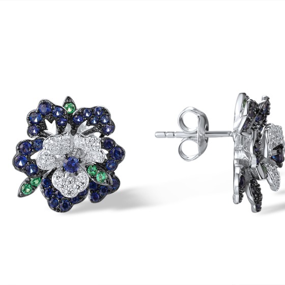 Sterling Silver w/ Black White Plating Earrings Created Sapphire,Synthetic Green Spinel,White Cubic Zirconia (E321355CSGZSK925)