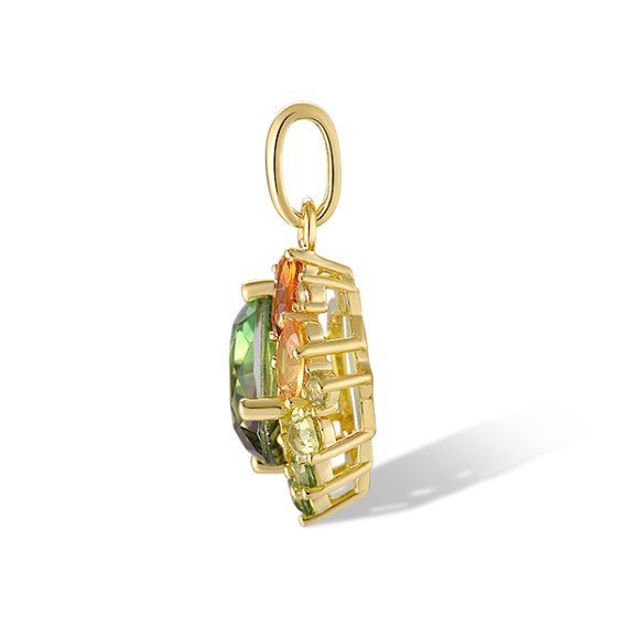 Sterling Silver w/ Yellow Plating Pendant Mix Glass,Synthetic Green Spinel,Synthetic Green Spinel ,Synthetic Yellow Spinel without chain (P321389MULSY925)