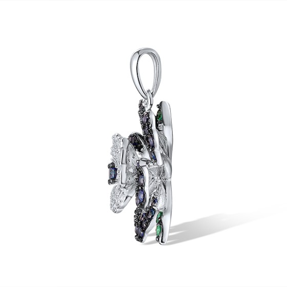 Sterling Silver w/ Black White Plating Pendant Created Sapphire,Synthetic Green Spinel,White Cubic Zirconia without chain (P321355CSGZSK925)