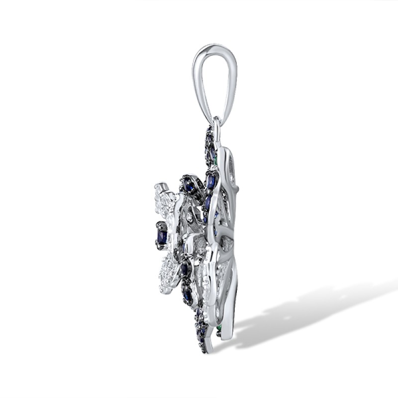Sterling Silver w/ Black White Plating Pendant Created Sapphire,Synthetic Green Spinel,White Cubic Zirconia without chain (P320958CSGZSK925)
