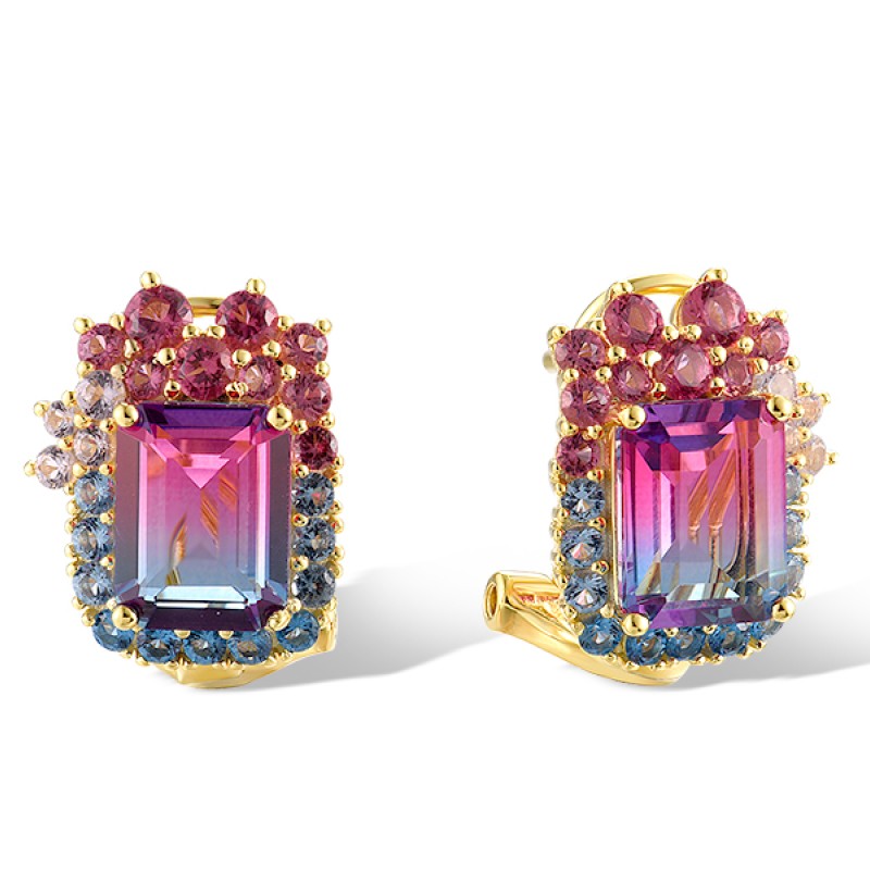 Sterling Silver w/ Yellow Plating Earrings Mix Glass,Synthetic Blue Spinel,Synthetic Morgan Spinel,Synthetic Red Spinel (E321391MULSY925)
