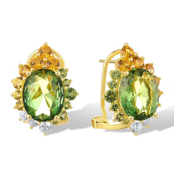 Sterling Silver w/ Yellow Plating Earrings Mix Glass,Synthetic Green Spinel,Synthetic Green Spinel ,Synthetic Yellow Spinel,White Cubic Zirconia (E321390MULSY925)