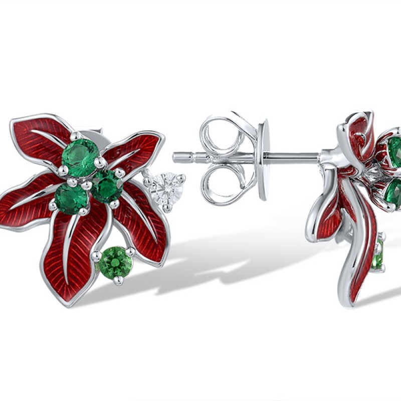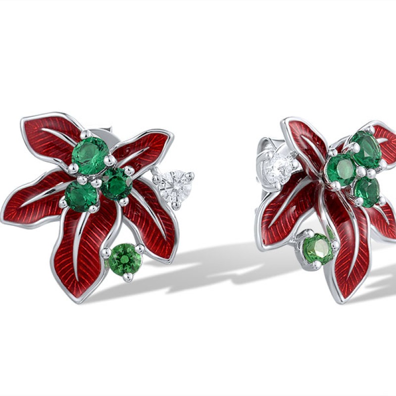 Sterling Silver Earrings Enamel,Synthetic Green Spinel,White Cubic Zirconia (E321652ENASL925)