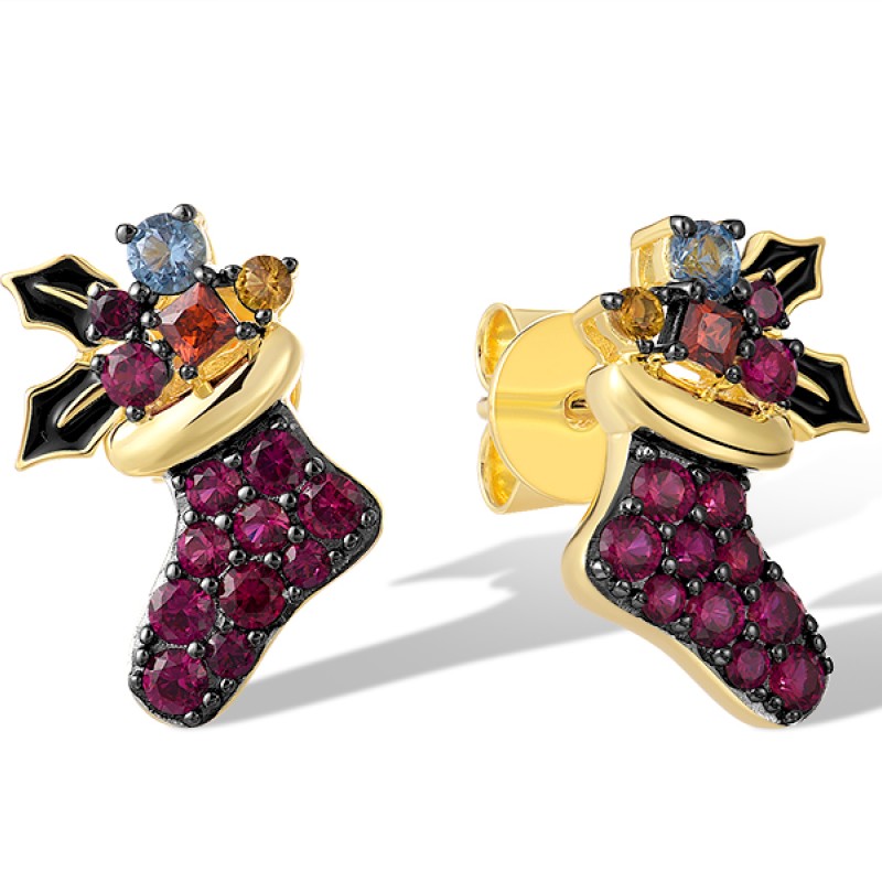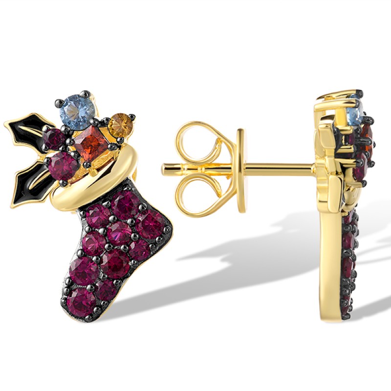 Sterling Silver w/ Yellow Black Plating Earrings Created Ruby,Enamel,Garnet Cubic Zirconia,Synthetic Blue Spinel,Synthetic Yellow Spinel (E321655ENASC925)