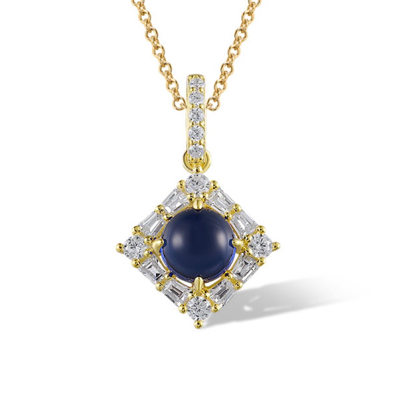 Sterling Silver w/ Yellow Plating Pendant White Cubic Zirconia,Synthetic Blue Spinel (P321330BZZSY925)