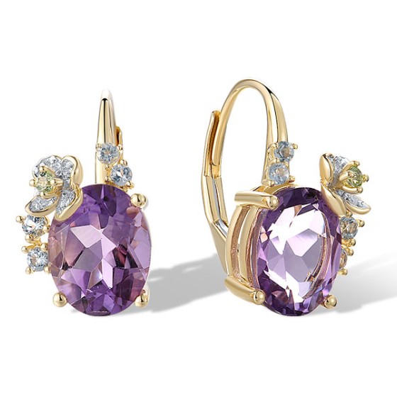 14KYW Earrings Amethyst,Blue Topaz (Sky Blue),Diamond,Peridot (E321275PABT14KYW)