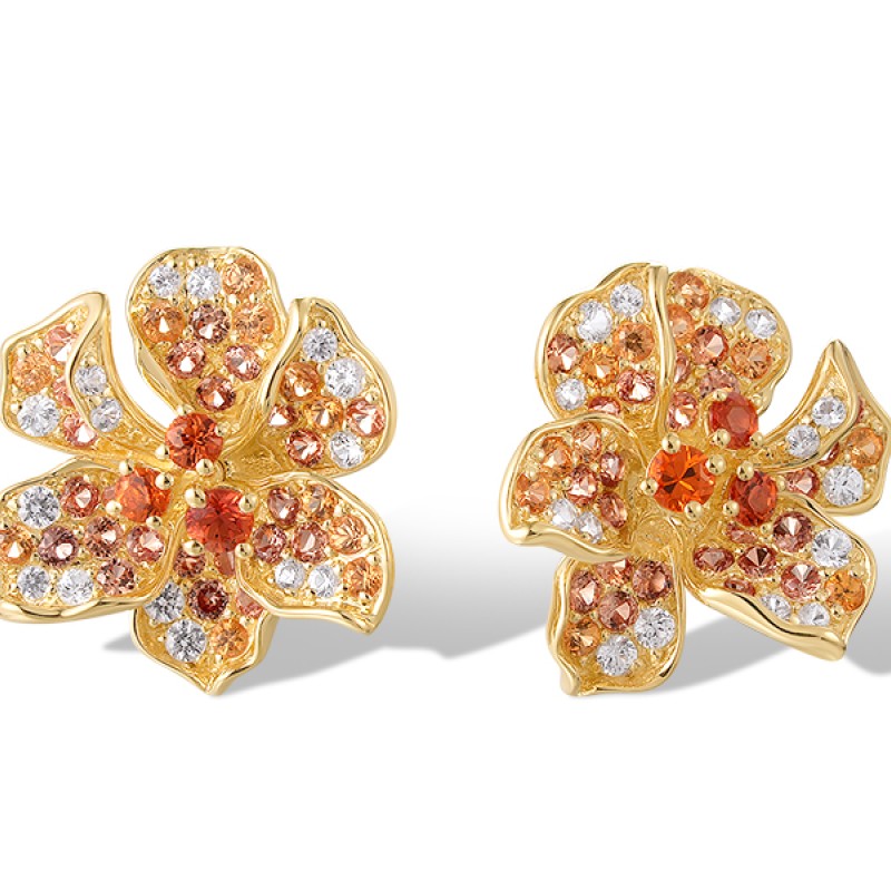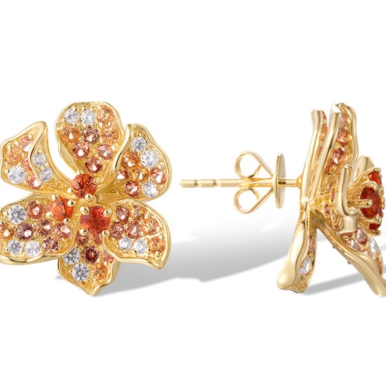 14KY Earrings Orange Sapphire,White Sapphire,Yellow Sapphire (E321063OYWS14KY)