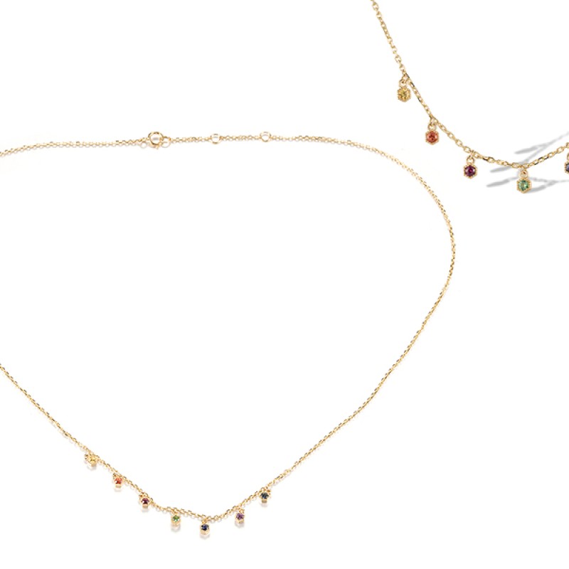 14KY Necklace Rhodolite Garnet,Yellow Sapphire,Blue Topaz (Sky Blue),Blue Topaz (Swiss Blue),Green Garnet,London Blue Topaz,Orange Sapphire (N320245AMUL14KY)