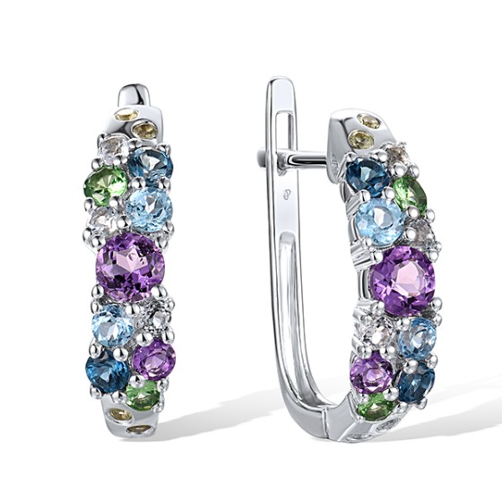 14KW Earrings London Blue Topaz,Peridot,Amethyst,Blue Topaz (Sky Blue),Blue Topaz (Swiss Blue),Green Garnet (E316544MUL14KW)