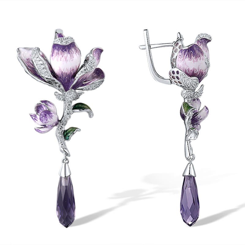 Sterling Silver Earrings Enamel,Purple Glass,White Cubic Zirconia (E314183ENASL925)