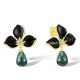 Sterling Silver w/ Yellow Plating Earrings Enamel,Green Glass,White Cubic Zirconia (E321616ENASY925)