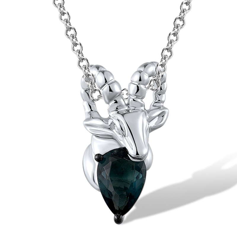 Sterling Silver w/ Black White Plating Pendant Blue Glass without chain (P306732BLGSK925)