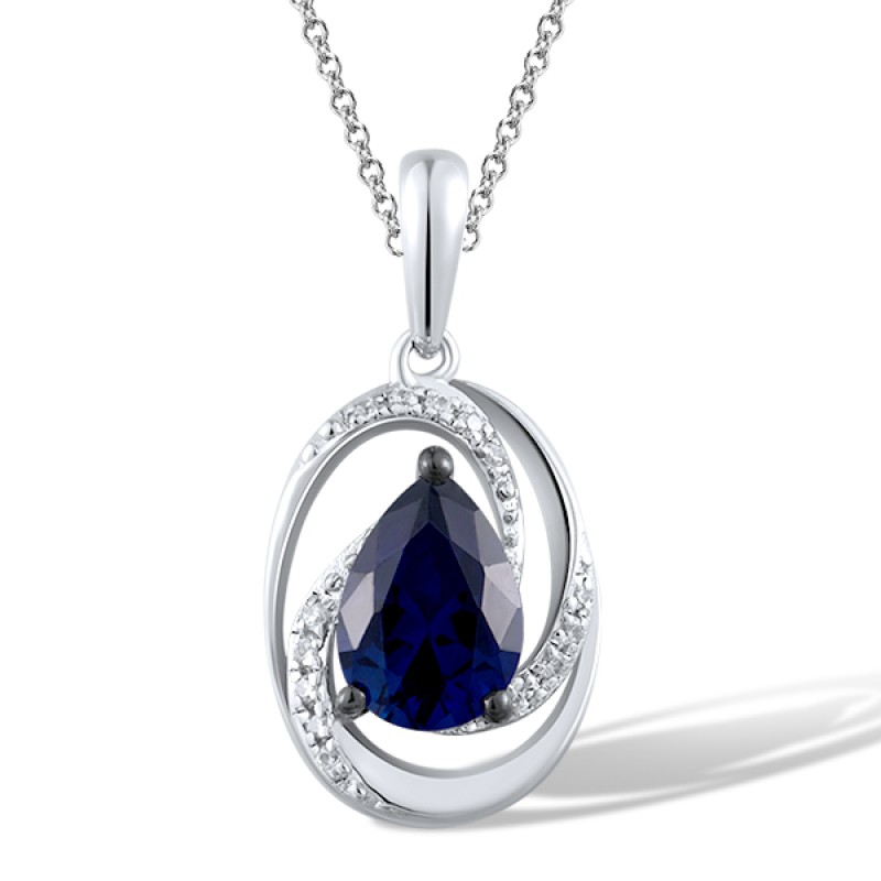 Sterling Silver w/ Black White Plating Pendant Created Sapphire,White Cubic Zirconia without chain (P312550CRSZSK925)