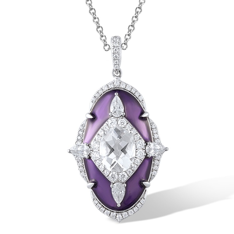 Sterling Silver Pendant Enamel,White Cubic Zirconia,White Glass without chain (P313768ENASL925)