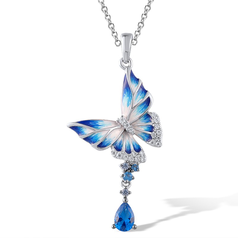 Sterling Silver w/ Black White Plating Pendant Enamel,Synthetic Blue Spinel,White Cubic Zirconia without chain (P313782ENASK925)