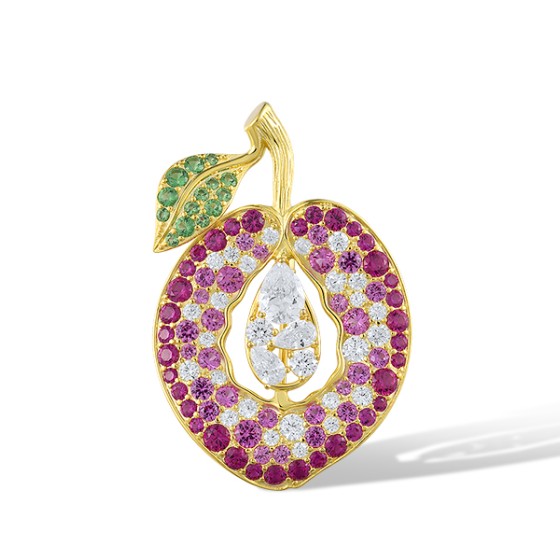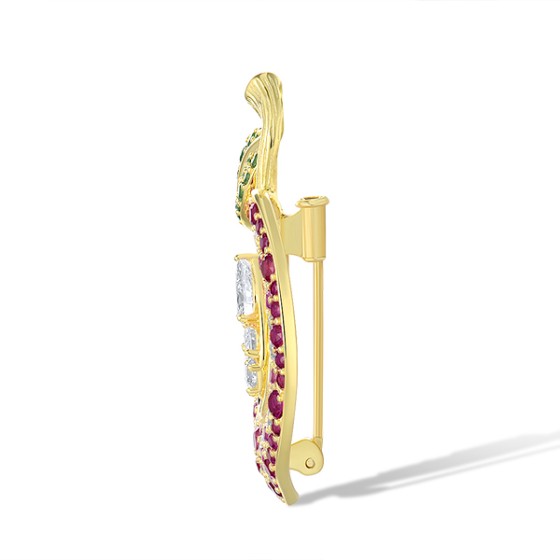 Sterling Silver w/ Yellow Plating Brooch Created Pink Sapphire,Created Ruby,Synthetic Green Spinel,White Cubic Zirconia (O321983MULSY925)