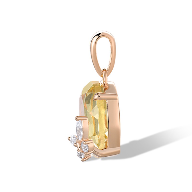 Sterling Silver w/ Rose Plating Pendant White Cubic Zirconia,Yellow Glass without chain (P321841YGZSR925)