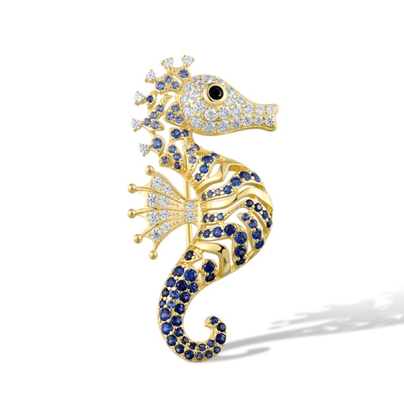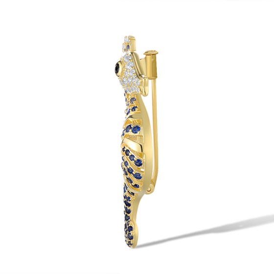 Sterling Silver w/ Yellow Plating Brooch Created Sapphire,Synthetic Blue Spinel,Synthetic Black Spinel,White Cubic Zirconia (O321989MULSY925)