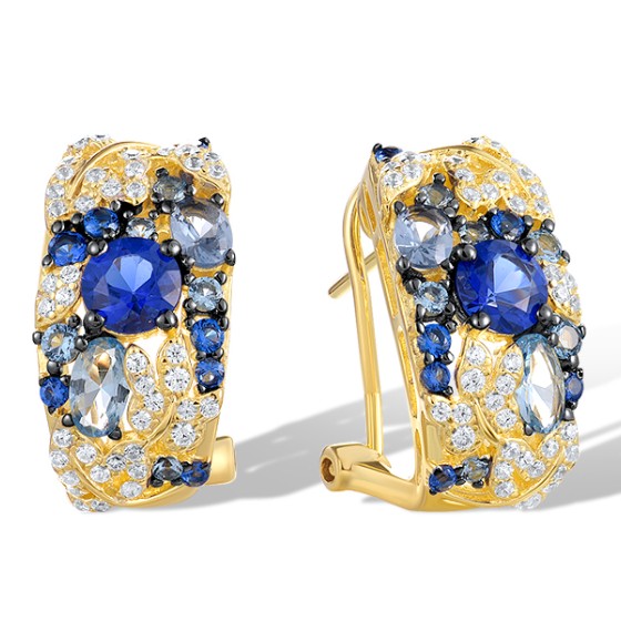 Sterling Silver w/ Yellow Black Plating Earrings Synthetic Blue Spinel,White Cubic Zirconia (E321338BLZSC925)