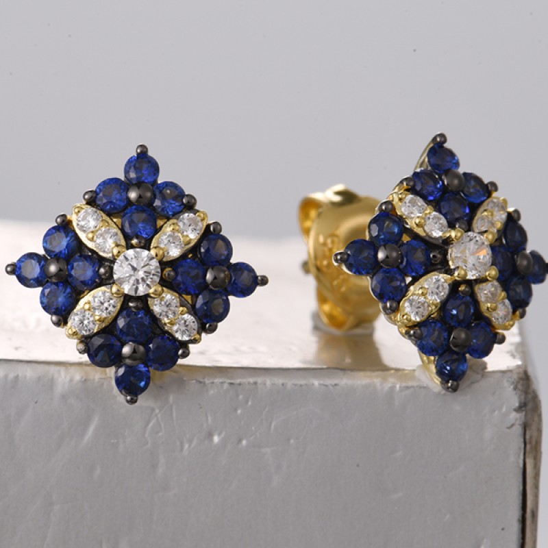 Sterling Silver w/ Yellow Black Plating Earrings Created Sapphire,White Cubic Zirconia (E322095CRSZSC925)
