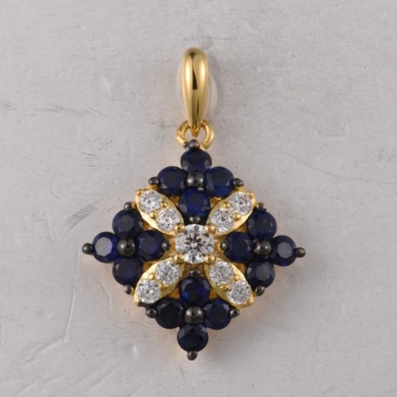 - Created Sapphire 16pc 1.040ct ,White Cubic Zirconia 9pc 0.470ct