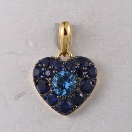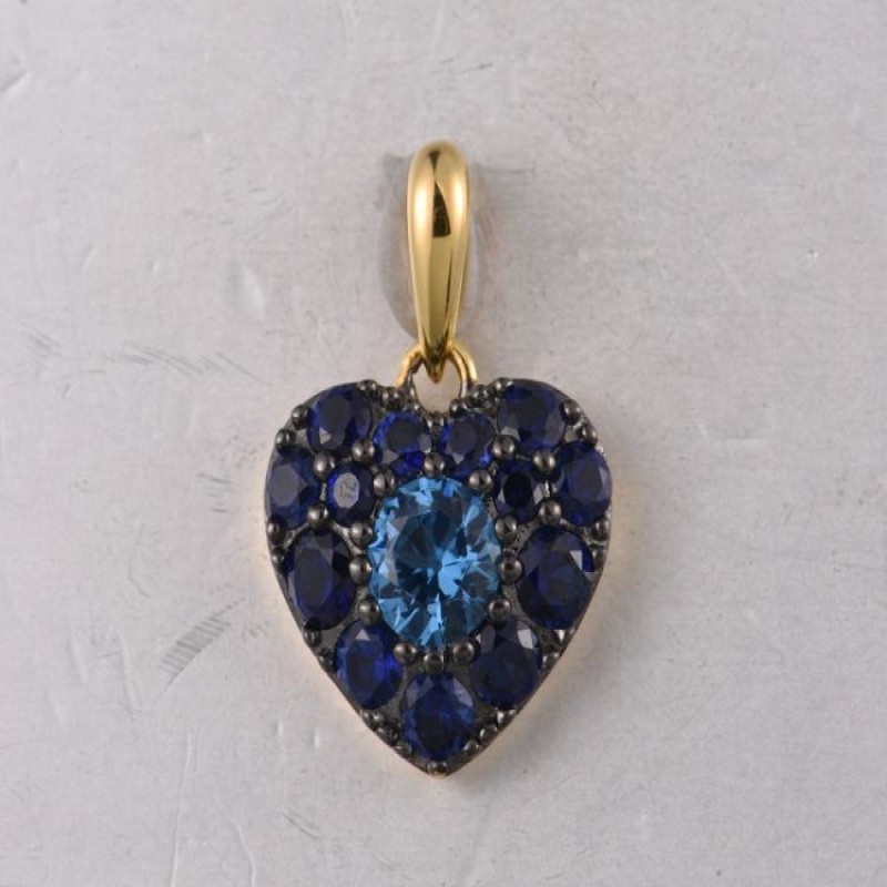 Sterling Silver w/ Yellow Black Plating Pendant Synthetic Blue Spinel,Created Sapphire (P322092BSRSC925)