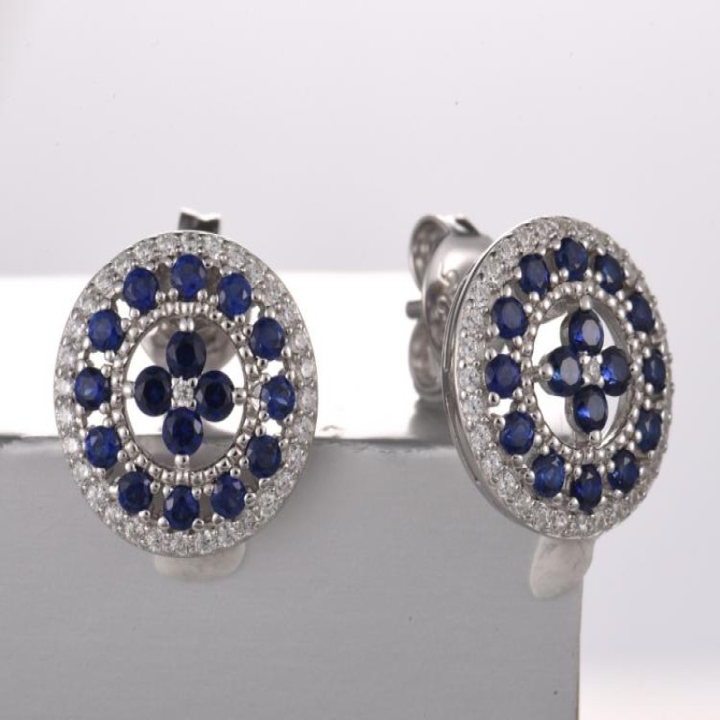 Sterling Silver Earrings Created Sapphire,White Cubic Zirconia (E322089CRSZSL925)