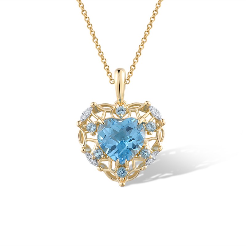 14KYW Pendant Diamond,Blue Topaz (Swiss Blue) (P321907BLT14KYW)