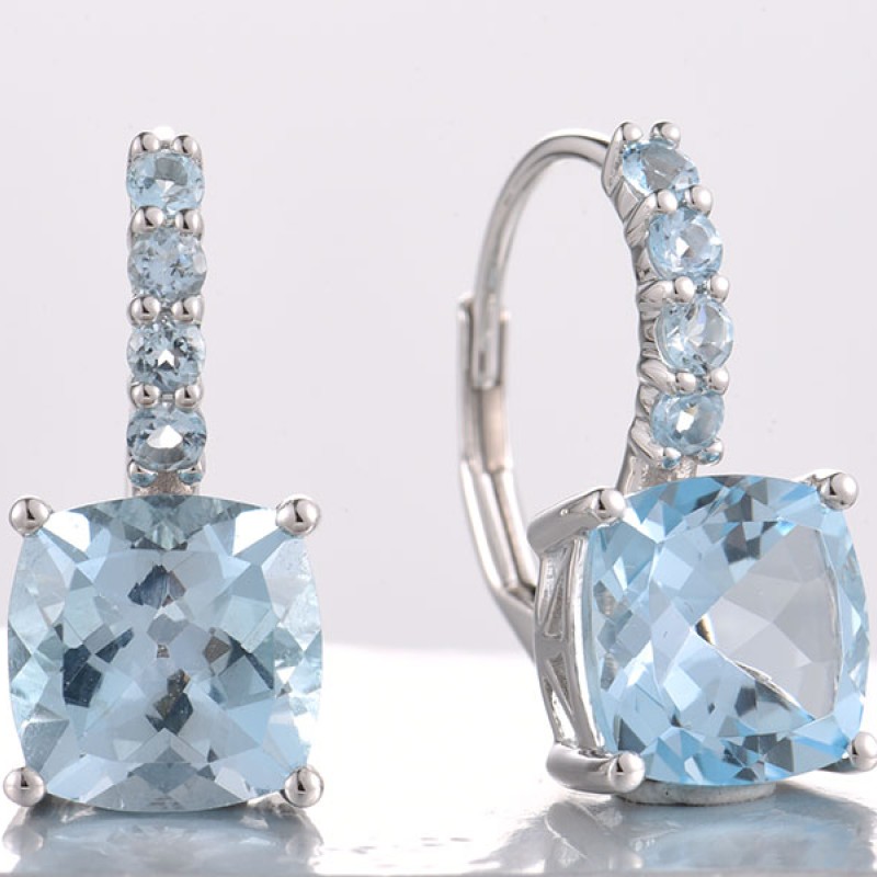 14KW Earrings Blue Topaz (Sky Blue),Blue Topaz (Swiss Blue) (E321747BTK14KW)
