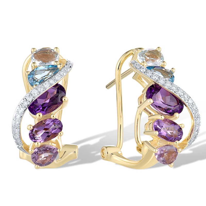 14KYW Earrings Blue Topaz (Swiss Blue),Diamond,Amethyst,Blue Topaz (Sky Blue) (E321501ABBT14KYW)