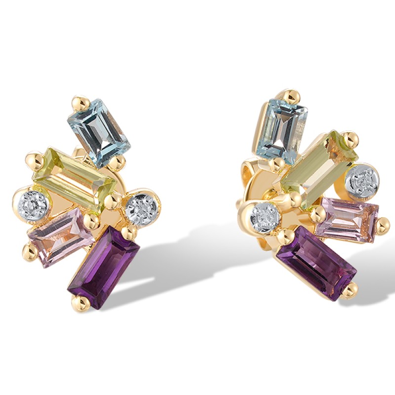14KYW Earrings Amethyst,Blue Topaz (Swiss Blue),Diamond,Peridot (E321345ABLP14KYW)