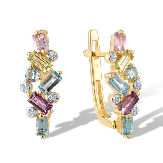 14KYW Earrings Amethyst,Blue Topaz (Swiss Blue),Diamond,Peridot (E321343ABLP14KYW)