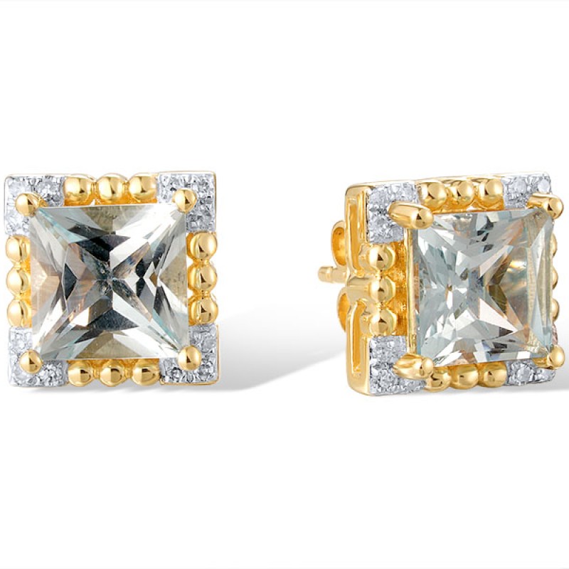 14KYW Earrings Blue Topaz (Sky Blue),Diamond (E321072BKT14KYW)
