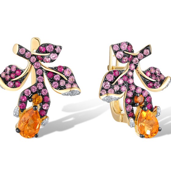 14KYWB Earrings Ruby,Citrine,Diamond,Pink Sapphire (E320780CPSR14KYWB)