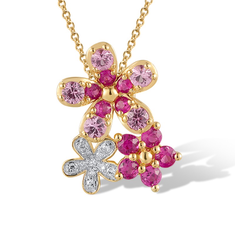 14KYW Pendant Ruby,Diamond,Pink Sapphire (P320500PRU14KYW)