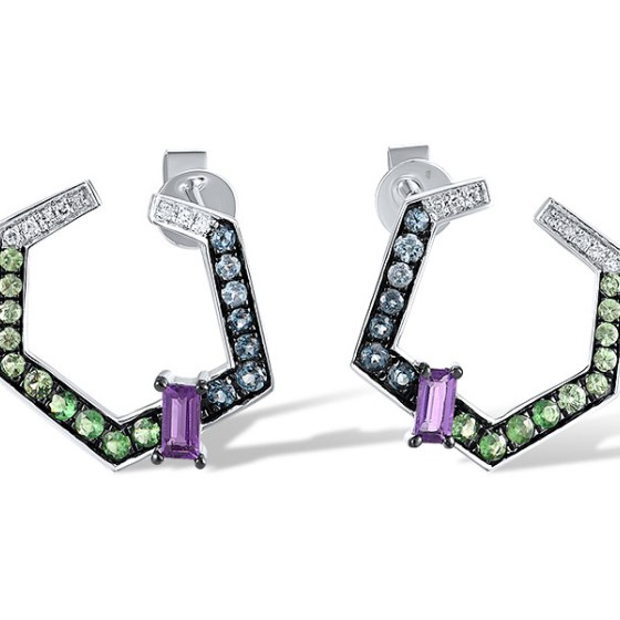 14KWB Earrings Diamond,Green Garnet,London Blue Topaz,Amethyst,Blue Topaz (Swiss Blue) (E320226MUL14KWB)