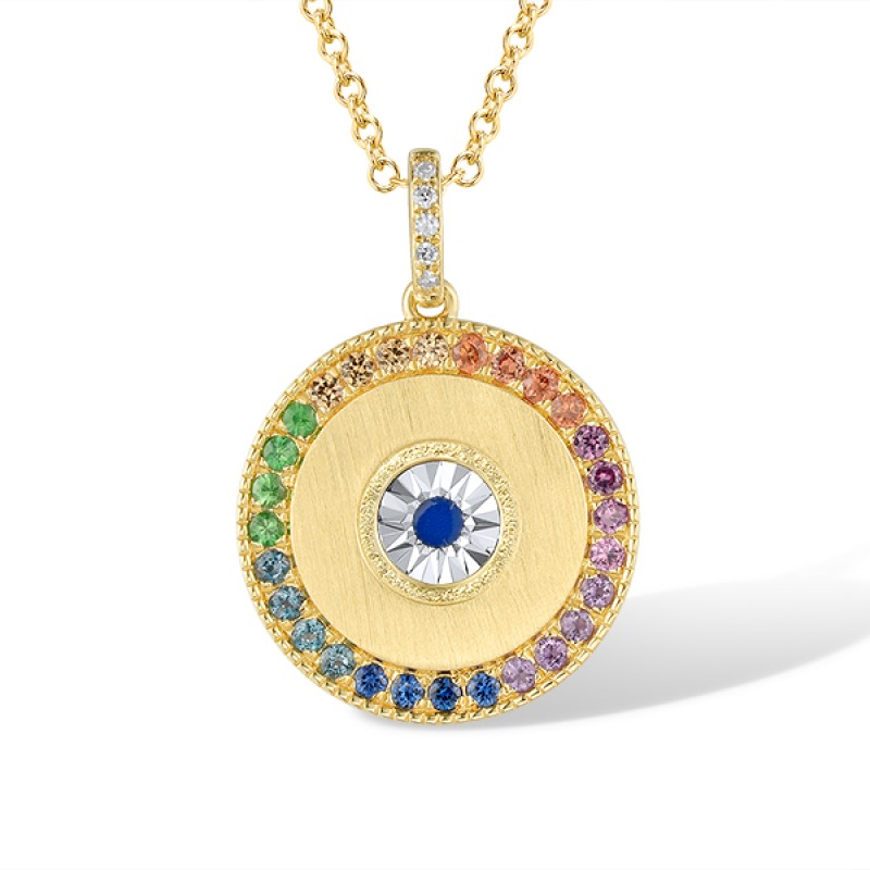 14TT Pendant Diamond,Yellow Sapphire,Enamel,Green Garnet,London Blue Topaz,Amethyst,Orange Sapphire,Blue Sapphire,Rhodolite Garnet (P319892ENA14TT)