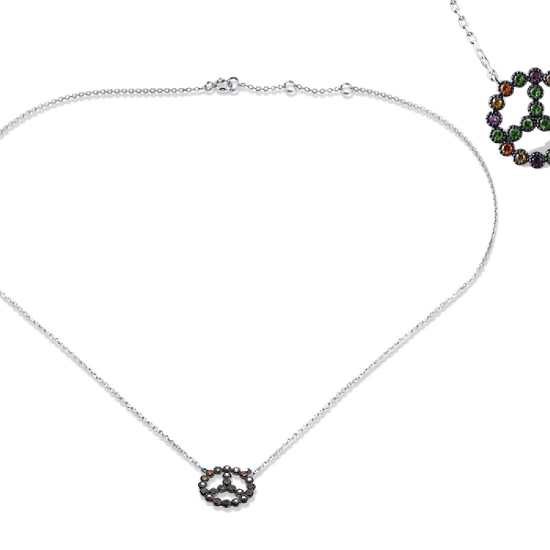 14KWB Necklace Green Garnet,Orange Sapphire,Yellow Sapphire,Amethyst (N319842MUL14KWB)