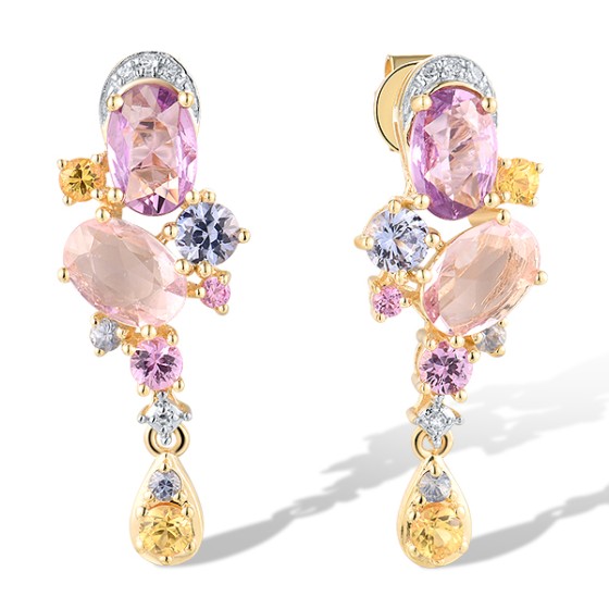 14KYW Earrings Orange Sapphire,Pink Sapphire,Yellow Sapphire,Blue Sapphire,Diamond (E319742MUL14KYW)
