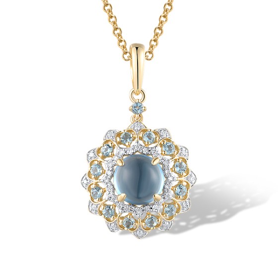 14KYW Pendant Blue Topaz (Swiss Blue),Diamond,London Blue Topaz (P319727BLL14KYW)