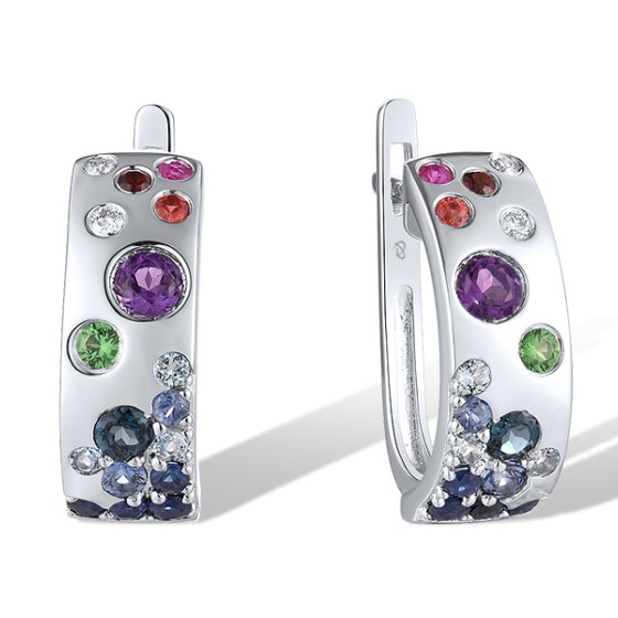 14KW Earrings Diamond,Garnet,Green Garnet,London Blue Topaz,Amethyst,Orange Sapphire,Blue Sapphire,Ruby,Blue Topaz (Swiss Blue) (E319555MUL14KW)