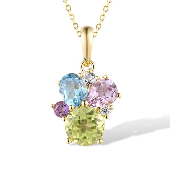 14KY Pendant Amethyst,Blue Topaz (Swiss Blue),Peridot,White Topaz (P318593MUL14KY)